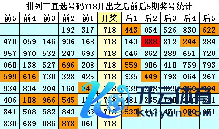 四、摆设三直选号码718历史上开出9次,其前后五期奖号离别为: