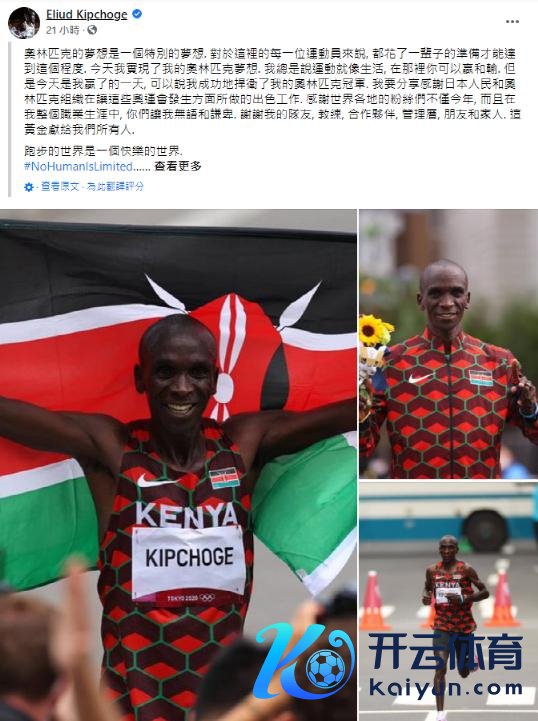 在东京奥运会男人比赛运行前 12 小时,基普乔格在脸书上说了一句他庸碌挂在嘴边的话:“ 东谈主类莫得极限(No Human Is Limited)”;