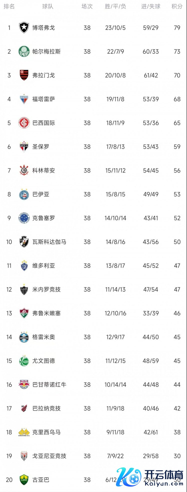 博塔弗戈23胜10平5负积79分,跳跃临了一轮输球的帕尔梅拉斯6分,队史第三次赢得巴甲联赛冠军,时隔29年再次夺冠,本赛季斩获自如者杯、巴甲双冠王。