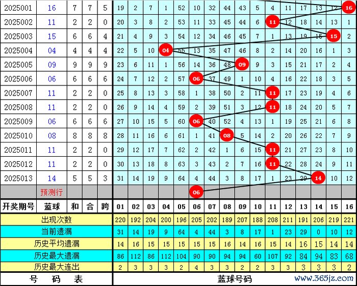 蓝球分析:在积年第014期开奖中,蓝球共出现了14个,散播较广,本年第014期瞻望蓝球号码不竭下落,关怀号码06。
