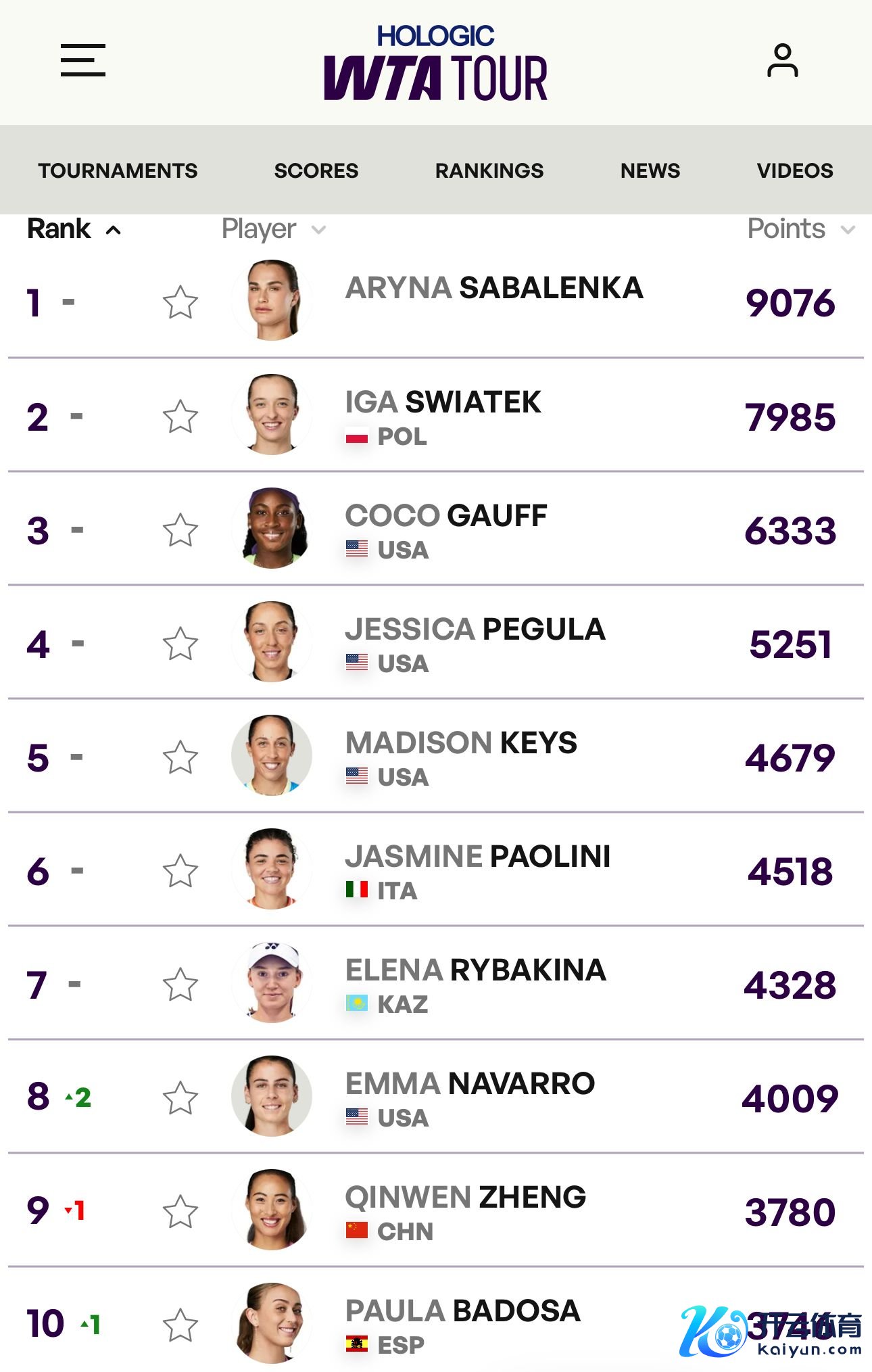 直播吧03月03日讯 WTA梅里达站决赛,头号种子纳瓦罗2-0夺冠。WTA排行更新,纳瓦罗飞腾2位至第8,天下排行跌至第9。