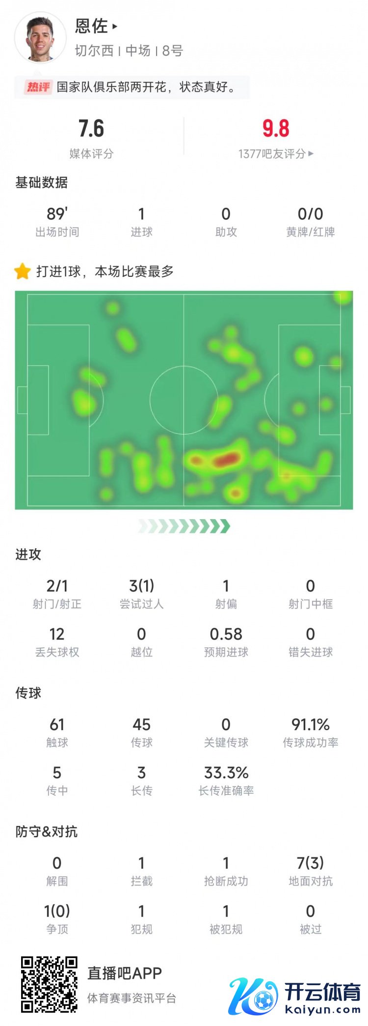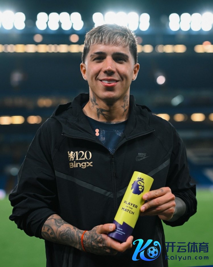4月4日讯 英超第30轮比赛,恩佐头球破门,攻入全场独一进球,匡助切尔西主场1-0打败热刺,他当选英超官方本场比赛最好球员。
