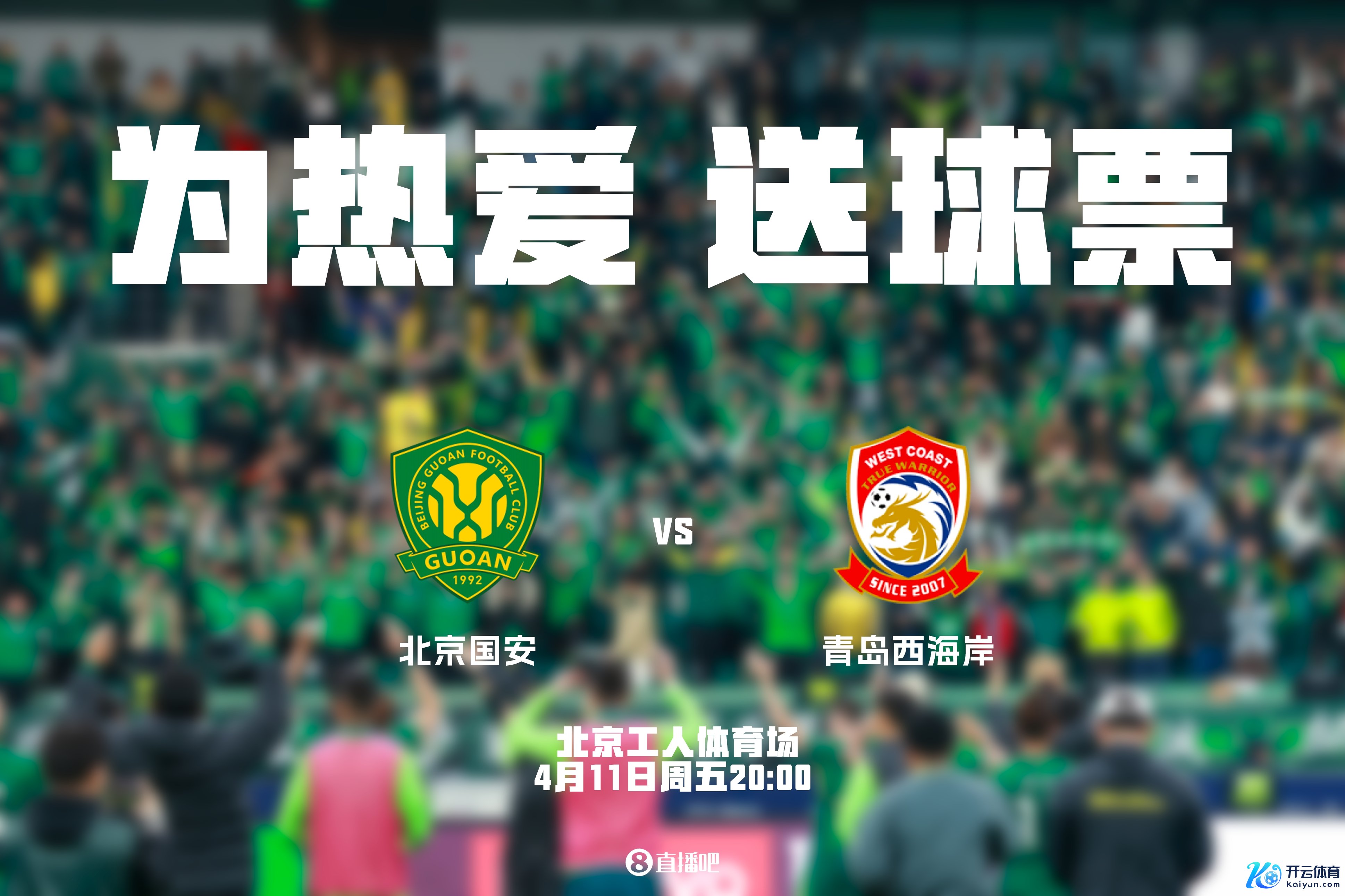 小吧送票啦,陆续看中超~明晚周五20:00,北京国安主场迎战青岛西海岸,小吧将送出2张门票,邀你来工体不雅战,感受一流的比赛氛围!