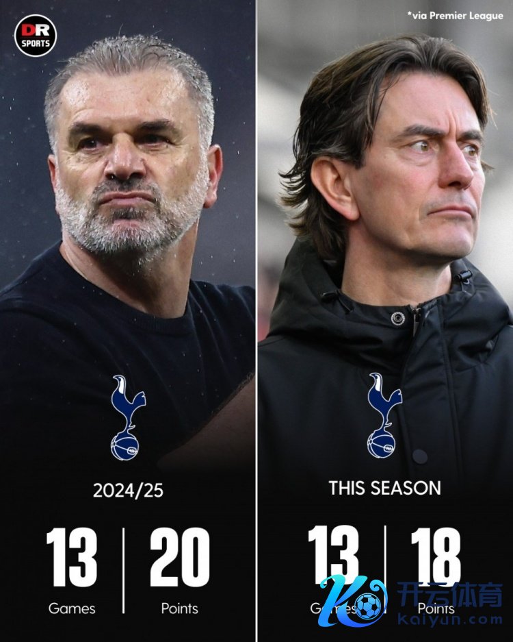 媒体指出体育录像/图片,弗兰克麾下的热刺本赛季前13轮英超比赛积18分,比上赛季澳波抓教同时还少2分,而上赛季热刺最终排行英超第17位。