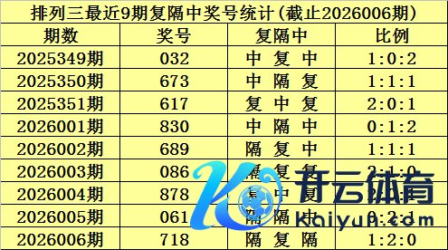 上期总结:成列三第2026006期奖号为:718。大小比为2:1,奇偶比为2:1,012路比为0:2:1。