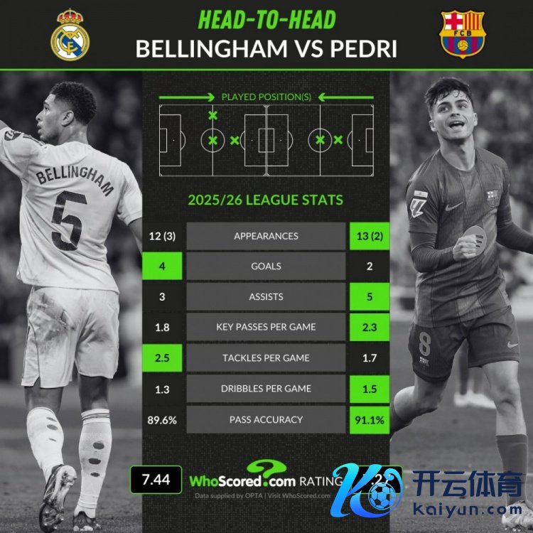 贝林厄姆:12首发、3替补,4球、3助攻,1.8错误传球、2.5抢断、1.3过东谈主,传球获胜率89.6%,获评7.44分