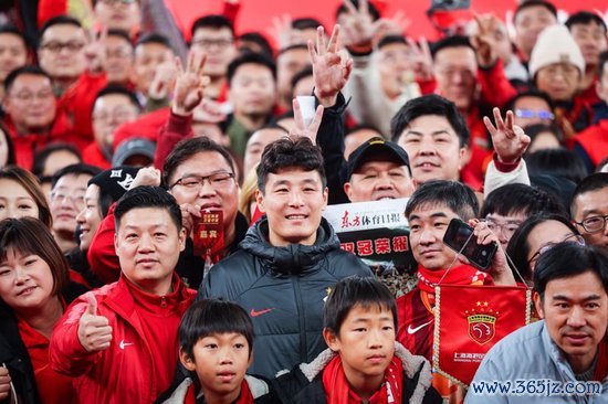 2024年底,武磊在夺冠后的转头会上和球迷合影。