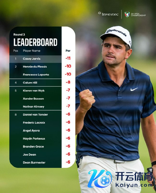 南非选手包揽了本场赛事曩昔七届的扫数冠军,而贾维斯在斯泰伦博斯高尔夫俱乐部(Stellenbosch Golf Club)周六的热烈角逐中,打出了无柏忌的64轮好意思满施展,三轮收获为199杆(67-68-64),低于圭臬杆11杆,看上去会赓续南非的掌握。