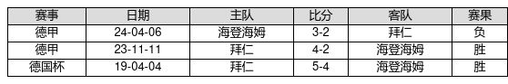 拜仁 VS 海登海姆两队近10年的交战次数为3场,拜仁2胜0平1负,赢球概率为66.7%,平局概率为0.0%,输球概率为33.3%。