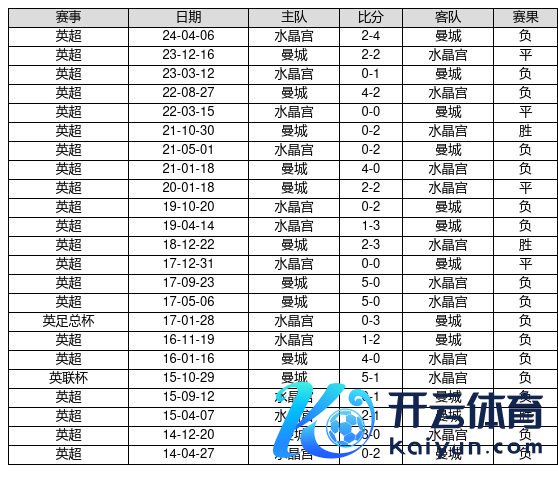 水晶宫 VS 曼城两队近10年的交战次数为23场,水晶宫3胜4平16负,赢球概率为13.0%,平局概率为17.4%,输球概率为69.6%。