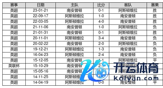 阿斯顿维拉 VS 南安普顿两队近10年的交战次数为14场,阿斯顿维拉4胜3平7负,赢球概率为28.6%,平局概率为21.4%,输球概率为50.0%。