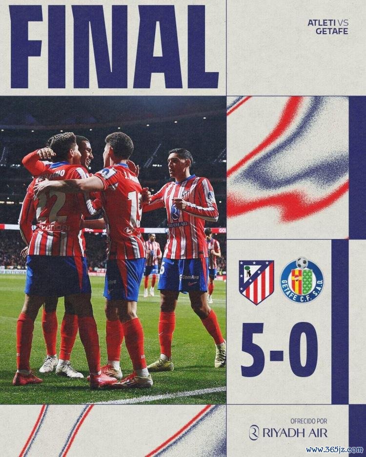 第85分钟,马竞扩大比分!反击契机科雷亚左路横叩门前索尔洛特推射破门,马竞5-0赫塔菲。↓