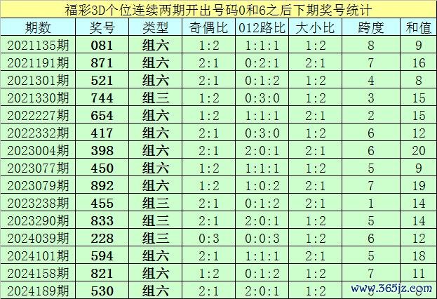 个位号码:最近两期个位开出号码为0-6,在福彩3D历史开奖中,前后两期个位分歧开出号码0-6的奖号出现了78次。最近15期个位0-6组合出现之后,其下期奖号分歧为:081-871-521-744-654-417-398-450-892-455-833-228-594-821-530;