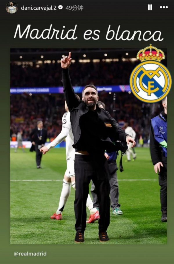 体育录像/图片 3月13日讯 在本轮欧冠,皇马点球大战淘汰马竞晋级。 赛后当今还在养伤阶段的卡瓦哈尔也参加球场与队友一同庆祝到手体育录像/图片,他在社媒晒出相片并配文写说念:“马德里是白色的!”......【更多...】