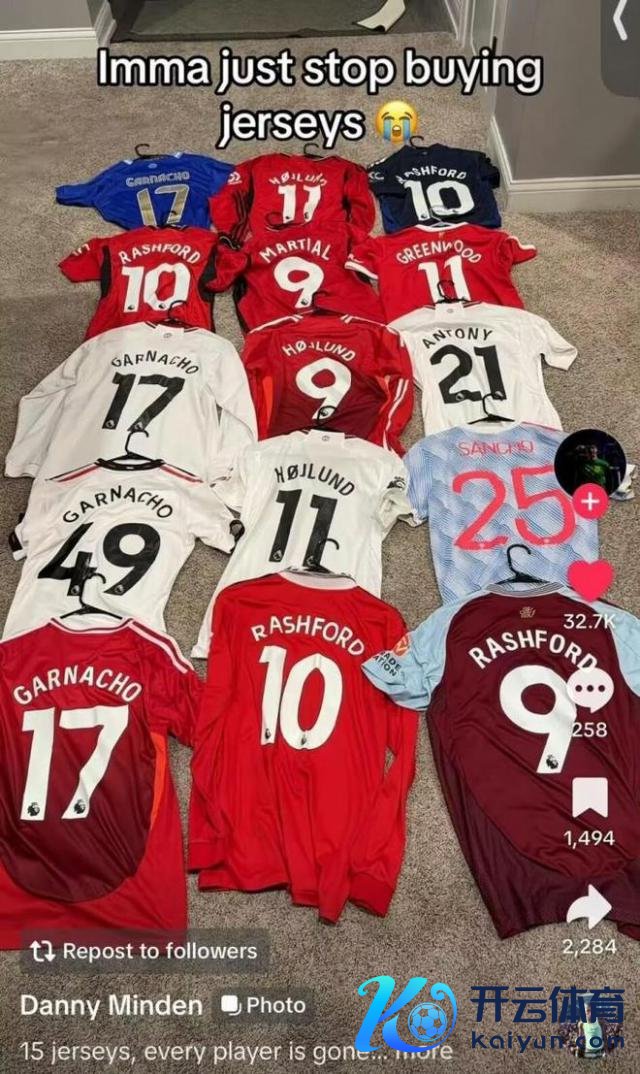 海外曼联球迷购买了 15 件曼联球员的球衣,包含加纳乔、霍伊伦、拉什福德、马夏尔、格林伍德、安东尼和桑乔,如今这 7 名球员依然一谈离队。