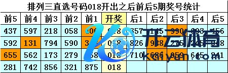 四、罗列三直选号码018历史上开出4次,其前后五期奖号分袂为: