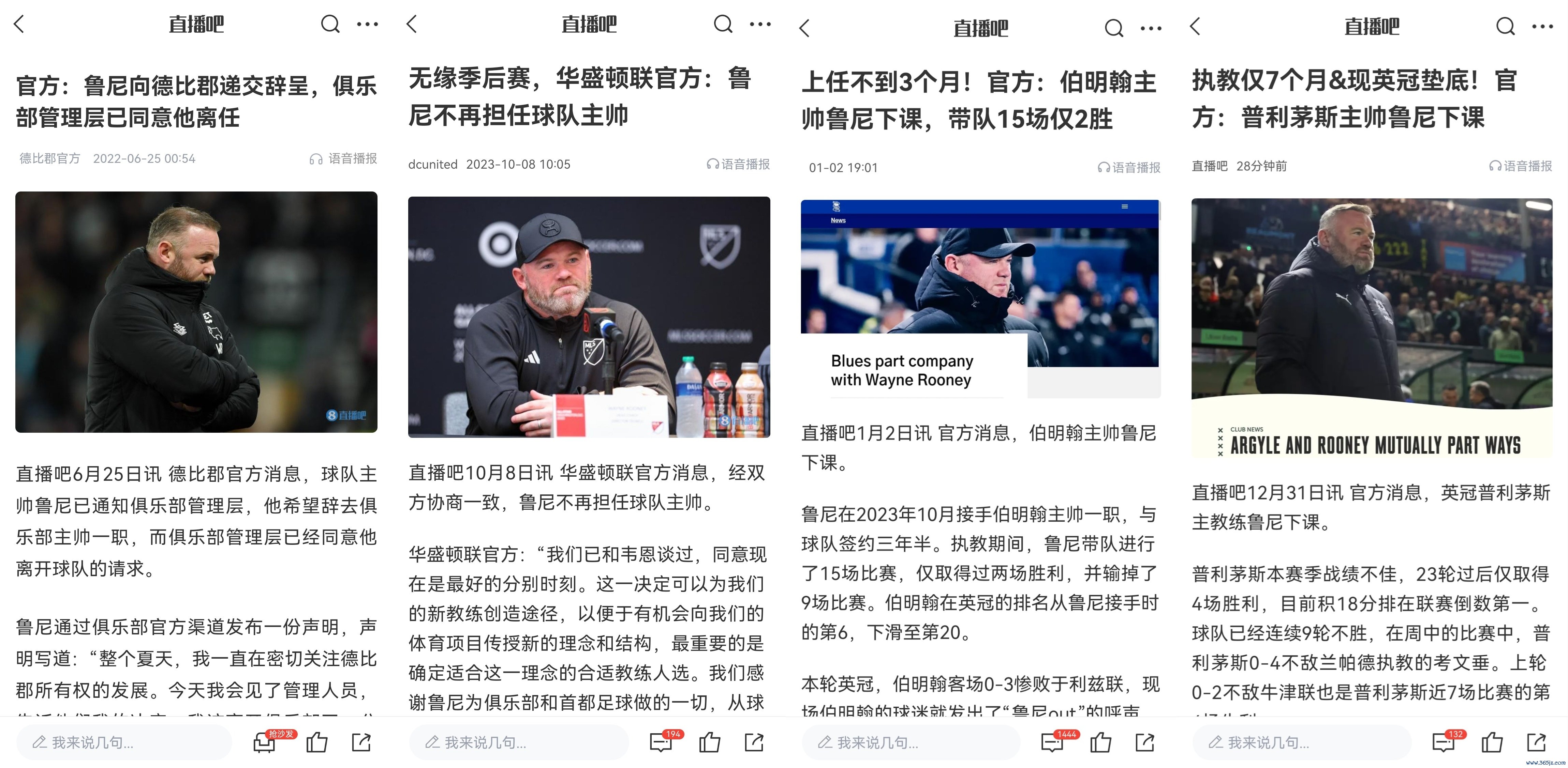 12月31日讯 带队仅半个赛季,英冠普利茅斯官宣主帅鲁尼下课。