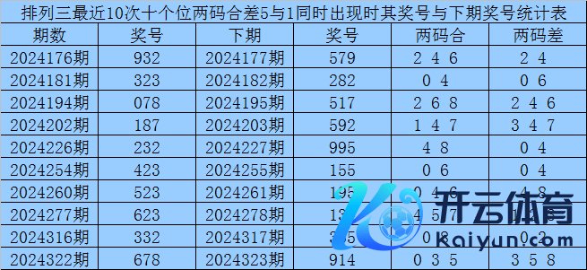 上期总结:成列三第2024325期开出奖号023体育赛事直播,其中奇偶比为1:2,大小比为0:3,012路比为2:0:1,和值为5,跨度为3。