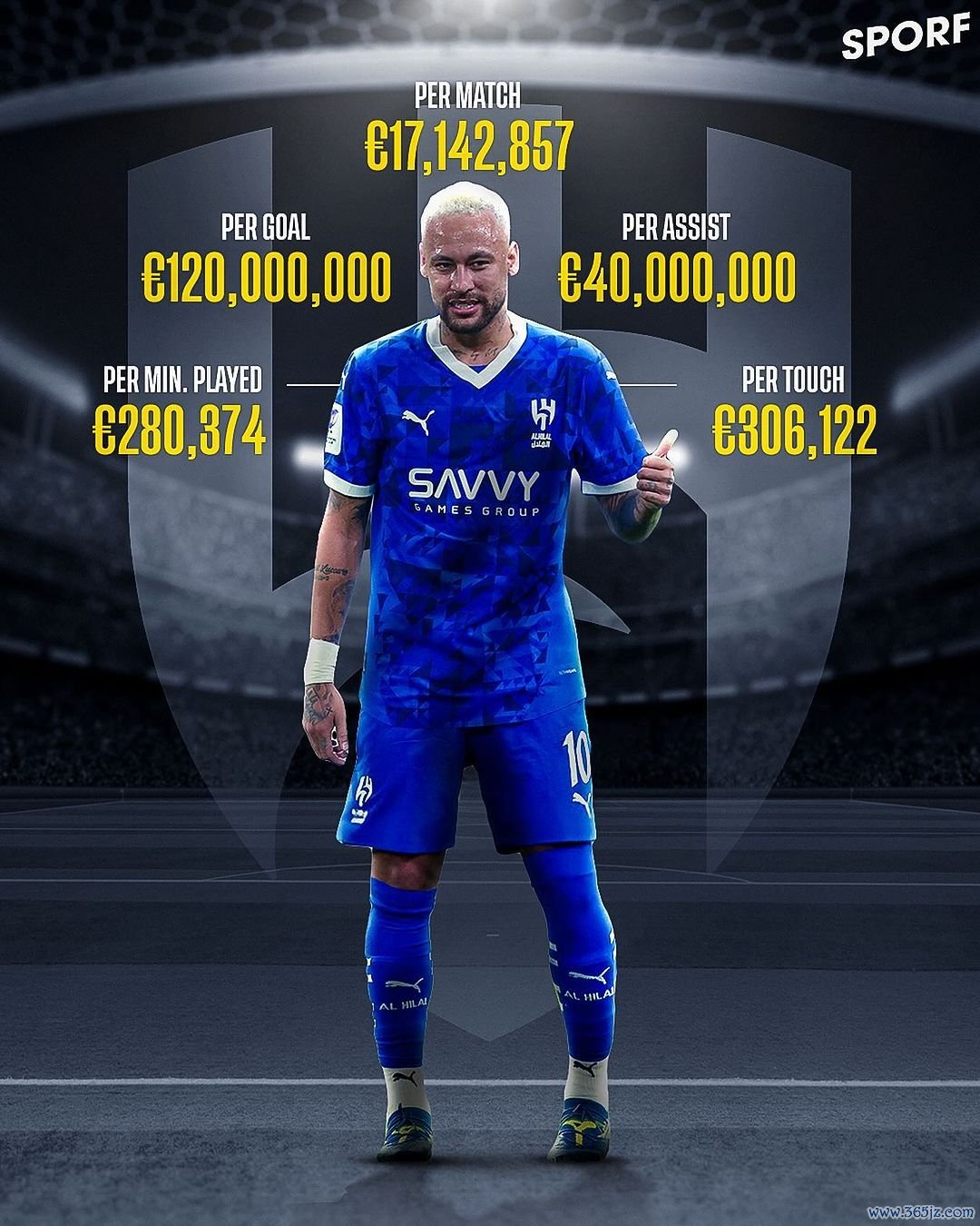 内马尔则是更典型的例子,2年条约总薪资4亿欧元,发一条带沙特字眼社媒就能拿50万。