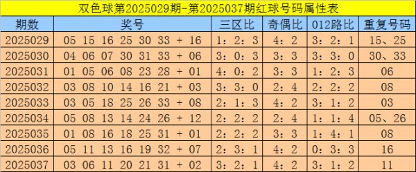 福彩双色球第2025037期奖号为:030611202131+02,红球奇偶比为4:2,三区比为3:2:1,012路比为3:1:2体育赛事直播,重号:11。 红球三区比:上期红球三区比为3:2:1,红球最近9期三区号码个数比为22:15:17,本期珍惜红三区号码走冷,展望红一区号码热出,红球三区比眷注3:2:1。 红球重号:上期开出1个类似号码:11,最近9期类似号码每期皆会出现,发达特殊活跃,本......【更多...】