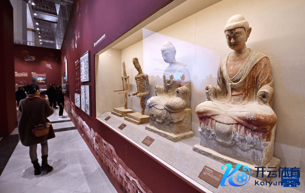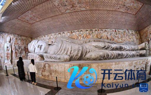 3月29日,不雅众在参不雅“如是莫高”敦煌艺术大展中展出的莫高窟第158窟的复刻版块。