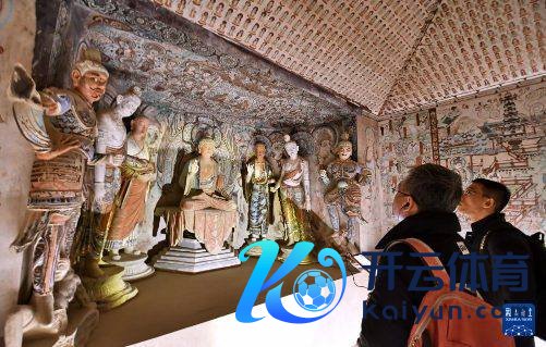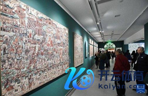 3月29日,不雅众在参不雅“如是莫高”敦煌艺术大展中展出的莫高窟第285窟的复刻版块。