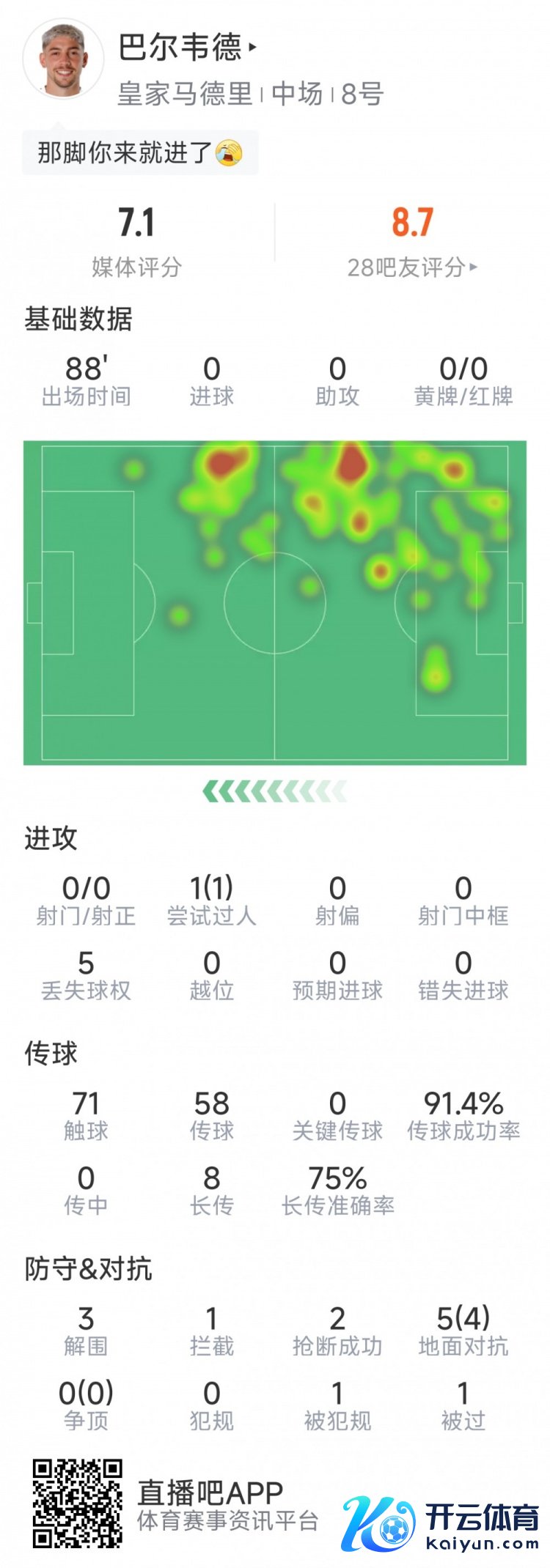 以下为他在本场数据:比赛技能88分钟1次过东说念主71次触球传球收效用91%3次突围1次阻扰2次抢断5抗争4收效评分7.1分 体育最新信息