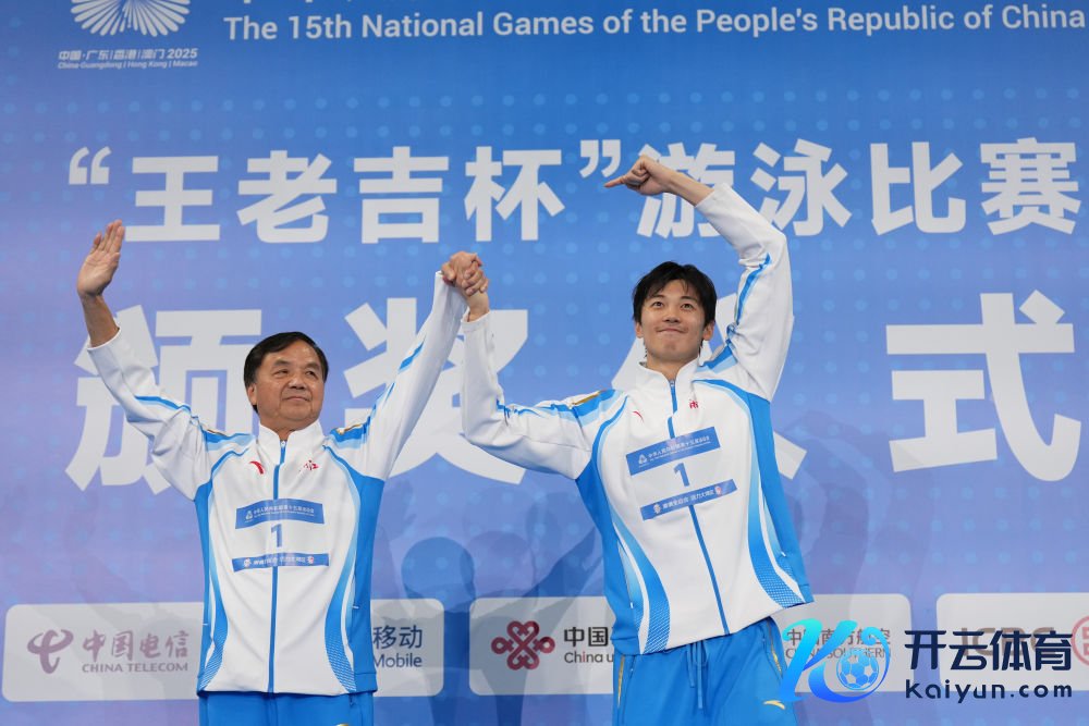 2025年11月17日,汪顺(右)和发挥注解朱志根在第十五届天下引导会游水男人400米个东说念主羼杂泳授奖典礼上合影。新华社记者 薛宇舸 摄