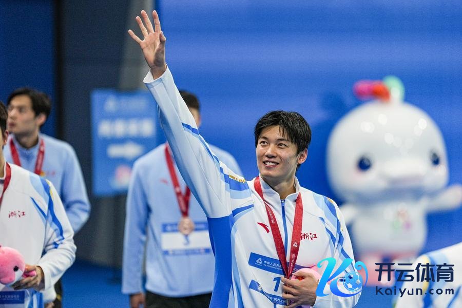 2025年11月10日,冠军浙江队选手汪顺在第十五届天下引导会男人4X100米摆脱泳奋勉授奖典礼后向不雅众致意。新华社记者 丁增尼达 摄