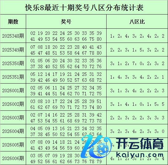 福彩精练8第2026006期开奖回来:03 05 07 09 19 28 30 32 34 38 49 52 56 61 62 66 73 76 78 79,其中奖号八区比为4:1:2:3:1:2:3:4。