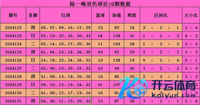 上期纪念红球开出04,05,11,15,20,32,蓝球开出13,和值87,跨度28。区间比3:2:1。大小比2:4。